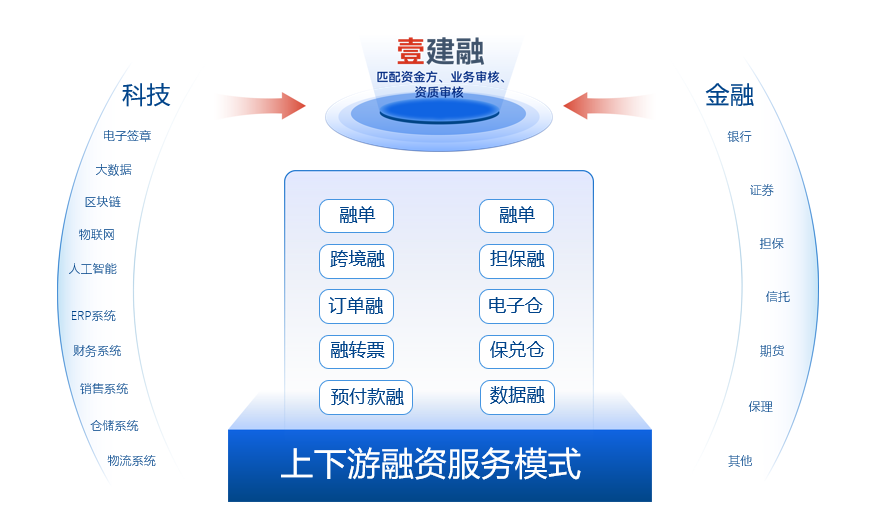 壹建融金融服務(wù)平臺服務(wù)形式多樣,比如:融單、預(yù)付款融、訂單融、擔(dān)保融、數(shù)據(jù)融、電子倉等等;經(jīng)濟是肌體,金融是血脈,在數(shù)字經(jīng)濟的大背景下,壹建融平臺對接中行、農(nóng)行、建行、中信、招商、光大等等多家銀行,與諸多銀行一道積極開啟數(shù)字化創(chuàng)新轉(zhuǎn)型之路,發(fā)展產(chǎn)業(yè)數(shù)字金融。