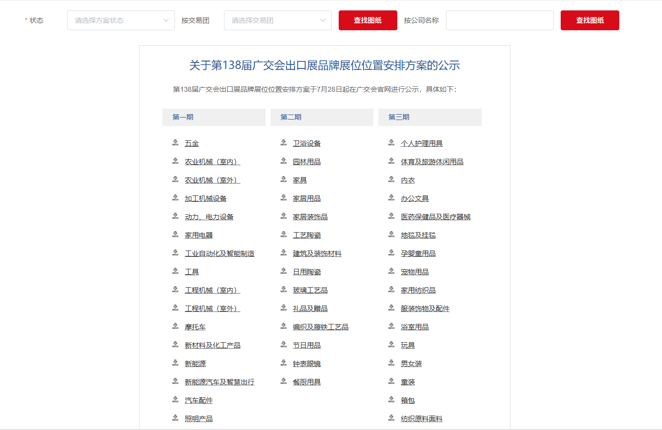 第138屆廣交會(huì)出口展品牌展位位置安排方案于7月28日起在廣交會(huì)官網(wǎng)進(jìn)行公示,包括以下兩部分內(nèi)容: