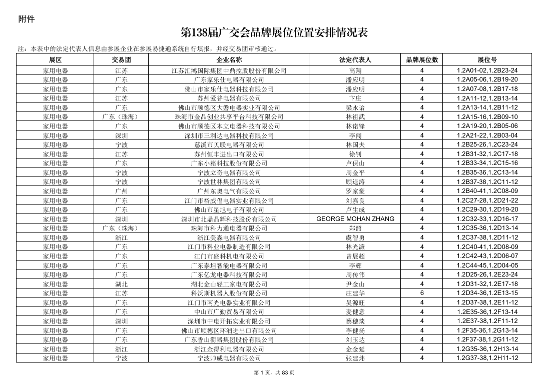 二是包含企業(yè)名稱、法人、展位號(hào)等信息的品牌展位位置安排情況表,公示網(wǎng)址為:https://www.cantonfair.org.cn/zh-CN/posts/913001623553708032,公示期至7月30日18時(shí)。